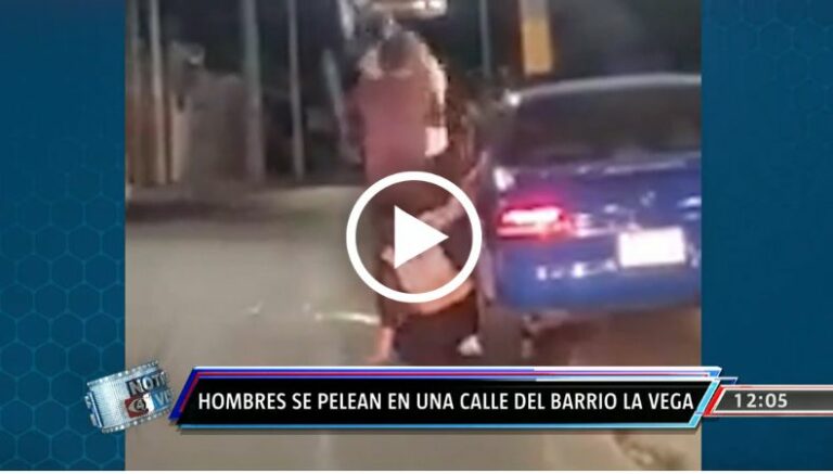 En el video, se puede observar cómo dos hombres se encuentran discutiendo. Uno de ellos tiene a su pareja y un palo en la mano, quien, por buscar separarles, recibe un golpe no intencional que la hace caer al suelo. Al parecer, ellos dos venían en el carro color azul.