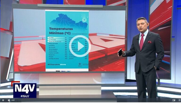 De igual manera, el registro de temperaturas en las estaciones climatológicas durante las primeras horas de este día, debido al ingreso de masas de aire frío en el territorio salvadoreño. Según datos de la institución, en Apaneca, la temperatura fue de 10.3°.