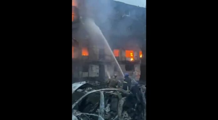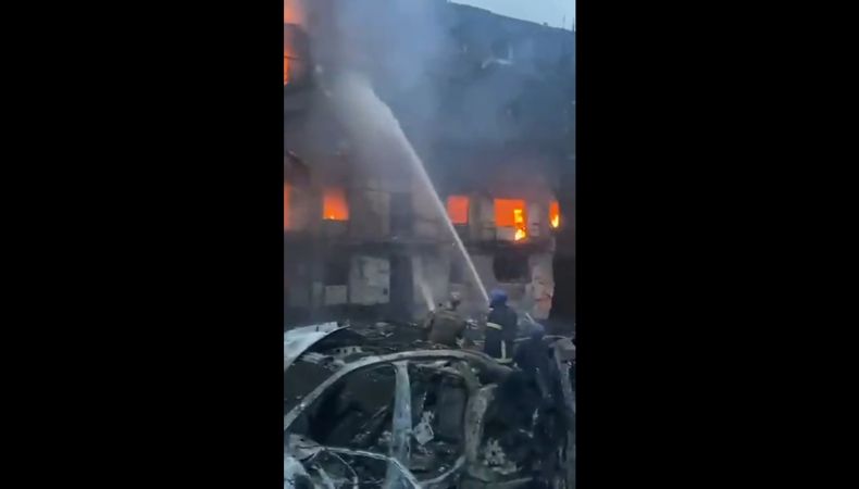 «Los apartamentos del primero al quinto piso están en llamas. El fuego ha cubierto 700 metros cuadrados. Los rescatistas lo están apagando», dijo Lysak.