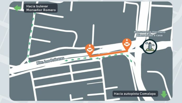 “El paso cerrado estará en el sentido hacia la 49° Av. Sur y calle Montserrat”, específica Fovial. Tome en cuenta este dato. Recuerde que la ruta alterna que se ofrece a los conductores es la avenida Las Amapolas.