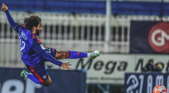 Este miércoles, el Olympiacos empató (2-2) con el Atromito, en el enfrentamiento de vuelta, y se clasificó a los cuartos de final de la Copa de Grecia gracias a la victoria en la idea (4-1). Un hecho que llamó la atención del público y de las redes sociales fue la celebración que Marcelo realizó a la hora de marcar uno de los tantos del equipo “rojiblanco”.