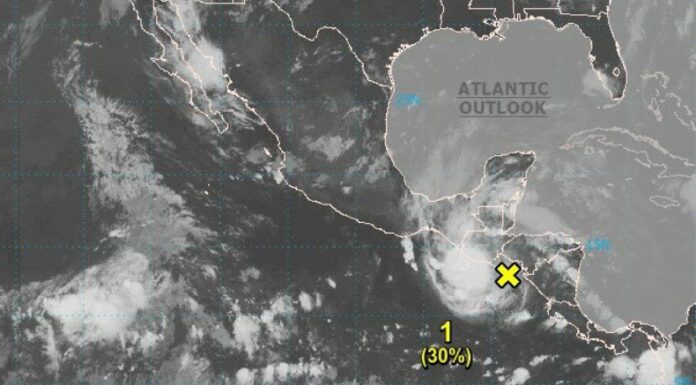 En este momento, la onda tropical se ubica al sur de El Salvador, con potencial progreso del 30% para las próximas 48 horas. Para los siguientes siete días, la probabilidad de desarrollo a una depresión tropical se mantiene en 80%, cuando se ubique al sur de Tehuantepec, México.