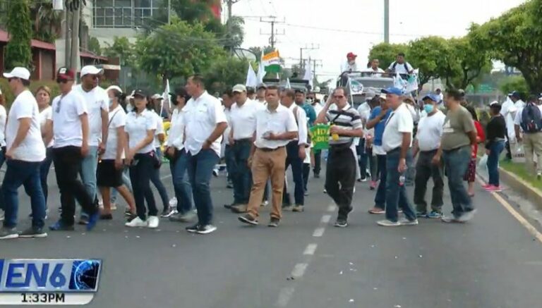 Con pancartas en mano y diferentes insignias, partieron de la alameda Juan Pablo II, hacia la Plaza Cívica, frente a Catedral Metropolitana, en el centro histórico de San Salvador.