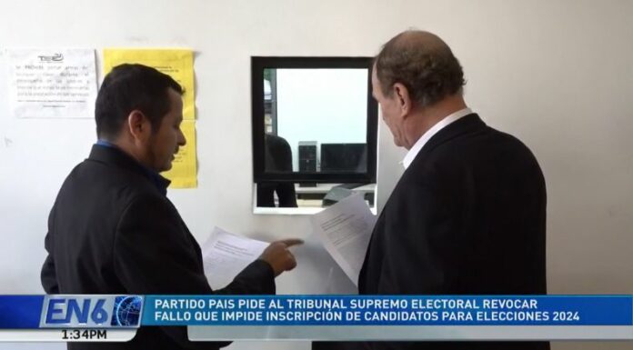 Tanto el candidato a la presidencia por el partido PAIS, como miembros del instituto político, visitaron las instalaciones del TSE para poder revocar la decisión que ha tomado y que le impide participar en las próximas elecciones del 2024.