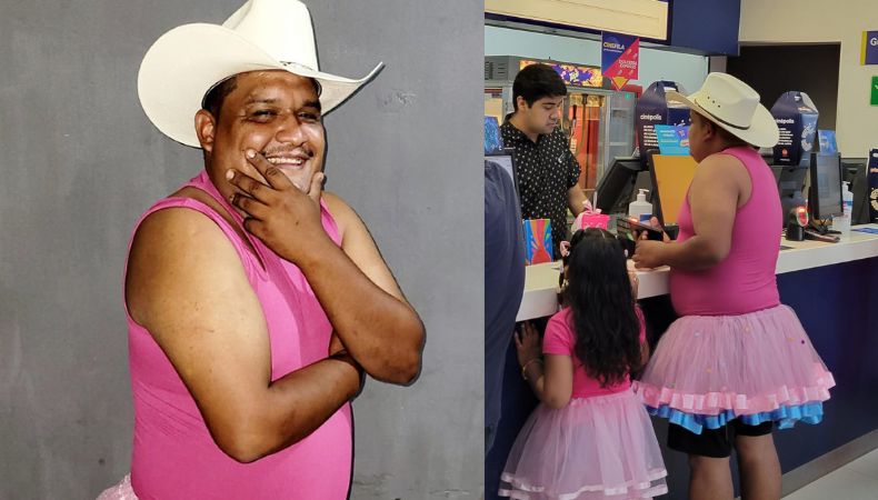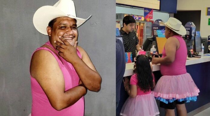El padre de familia, identificado como Eleazar Rodríguez Hernández, optó por utilizar una falda de tul de color rosa, con un sombrero estilo vaquero, y todo para acudir a ver el estreno de la película rosa. Asimismo, publicó en su cuenta de Facebook los motivo que lo llevaron a vestir de esa forma.“Mi hija me dijo ‘papi, llévame al estreno de la Barbie, pero te pones algo rosa o te da vergüenza’. Creo a la que le va a dar vergüenza será a ella”, especificó.