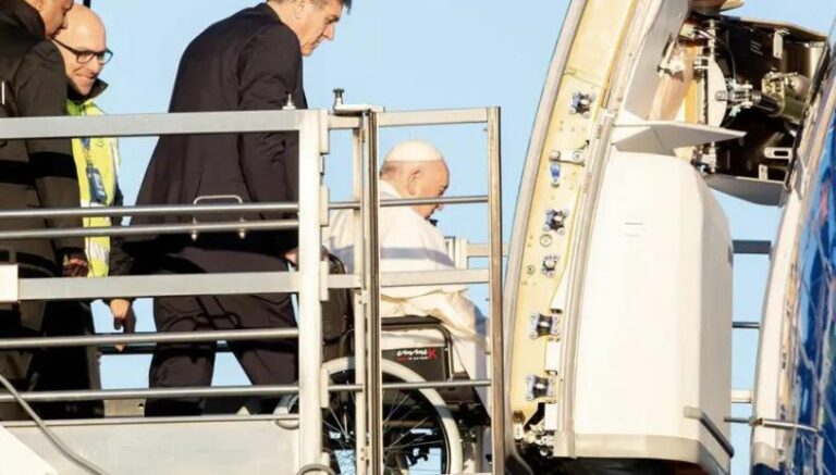 - La visita se tuvo que aplazar por el dolor de rodilla que padece el sumo pontífice de 86 años, quien se desplaza en silla de ruedas.