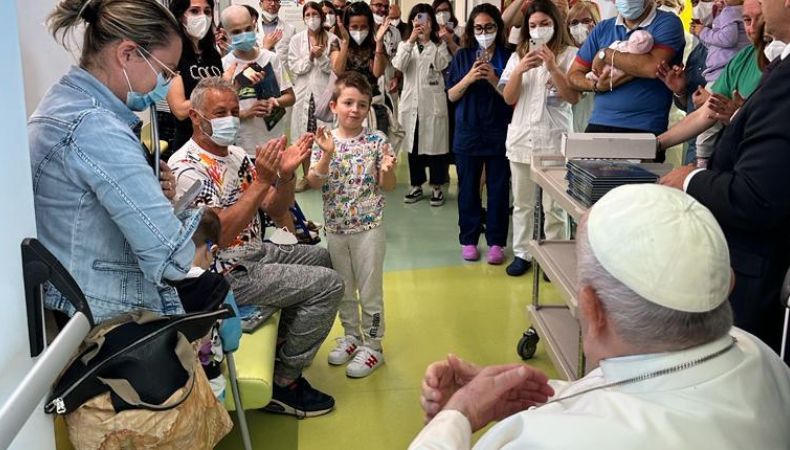 Papa visita a niños que reciben tratamiento en el Hospital Gemelli