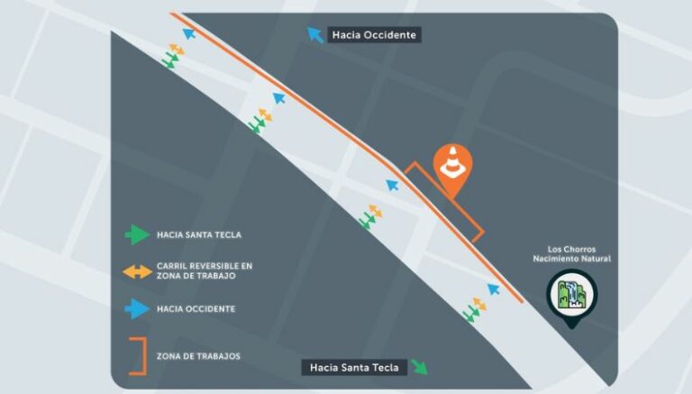Las autoridades han informado que por seguridad y para agilizar el tráfico vehicular, habilitaran el carril reversible en la zona de trabajos para los automovilistas que se dirijan al occidente del país.