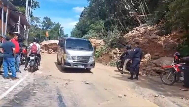 Por medio de la cuenta X, el VMT reportó un fuerte derrumbe a la altura del km 75 de la ctra. Troncal del Norte, en sentido hacia La Palma, Chalatenango. El paso se encuentra totalmente restringido.