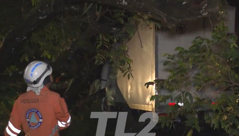 Un árbol de gran tamaño cedió, debido a las lluvias, y cayó sobre un camión que circulaba sobre la calle 1 de la colonia Lomas de San Francisco, en San Salvador. Según datos preliminares, la persona que trasportaba el camión, resultó ileso.