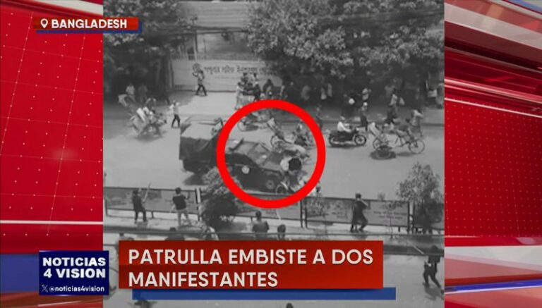 En la capital de Bangladesh, Dhaka, se han producido protestas organizadas por grupos de estudiantes. Sin embargo, tras días de caos y tragedias, se puede observar (en imágenes captadas por las cámaras de seguridad) el momento exacto en que una patrulla de policía embiste contra dos manifestantes.