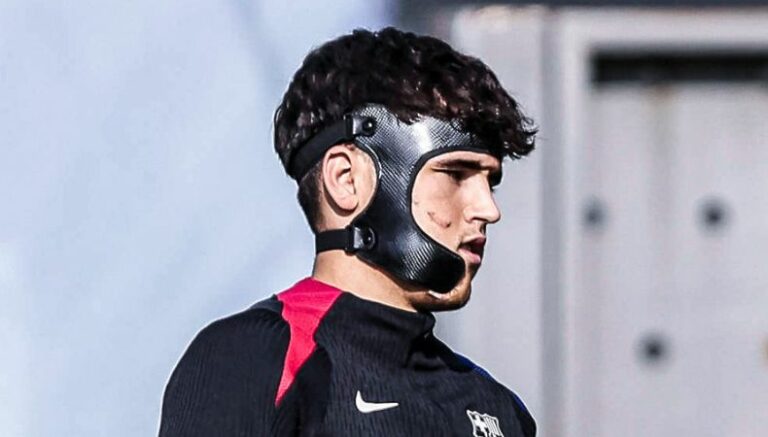 Por lo que, Pau Cubarsi le toca entrenar con mascara especial que le ayude a jugar bien sin poner en tanto riesgo su proceso de recuperación, y que por su puesto en la defensa es uno de los más sacrificados, para tratar de defender su portería.