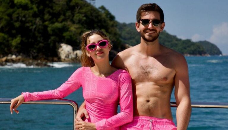 En las postales se aprecia que la feliz pareja luce unos trajes de baño color rosa; mientras posan con un fondo espectacular, en medio de toda la naturaleza que los rodeaba en ese preciso instante. Por tanto, las instantáneas fueron destacadas el pasado 31 de octubre por medio de la cuenta de Instagram de la actriz.