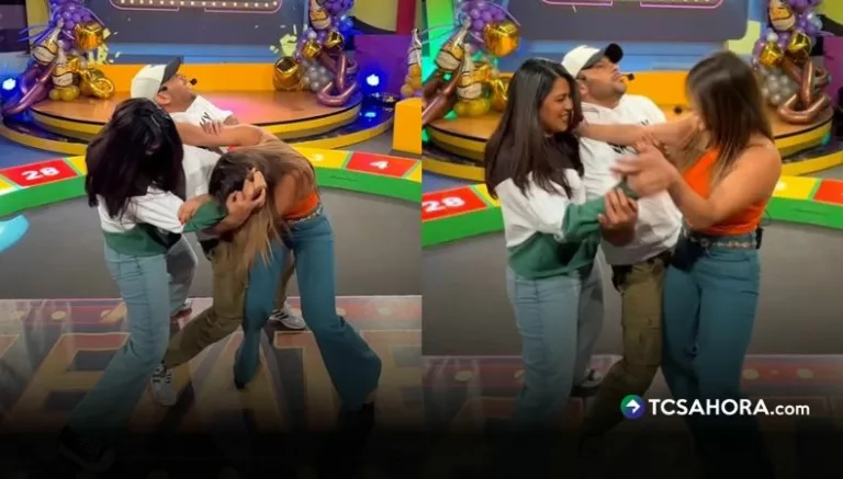 A través de las redes sociales del programa se compartió un video en el que los conductores Linda Sibrián, María Teresa y Alex Carranza aparecen forcejeando y jalándose entre risas. La escena simula una pelea frente a cámaras.