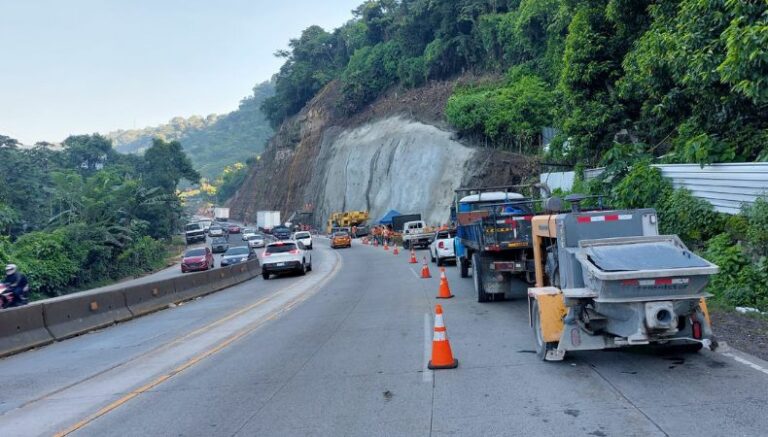 En la zona los equipos se mantienen reforzando el área con concreto lanzado. Recuerde que para estos trabajos se mantienen los cierres intermitentes, en el carril sentido a occidente contiguo al talud. Recuerde conducir con precaución y sigua las indicaciones de los gestores.