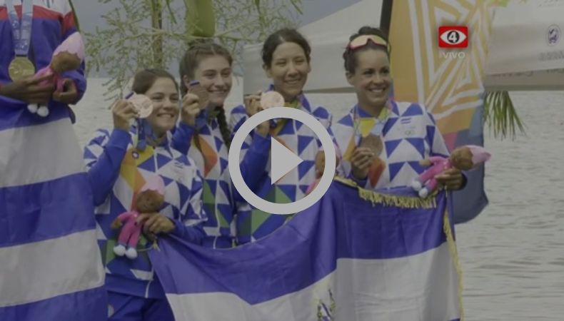 Momentos después de consagrarse en las aguas del Lago de Ilopongo, el cuarteto cuscatleco levantó la medalla de bronce debido a su increíble actuación en final de cuatro pares de remos cortos femenino.