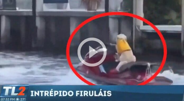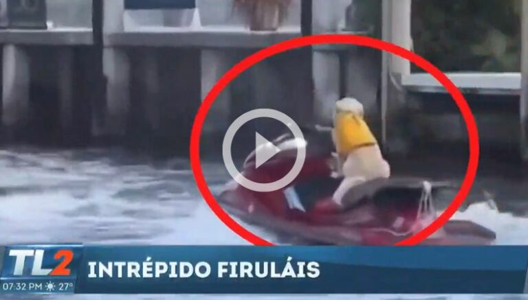 Una vez que el hombre pasa volando a su lado. Las personas que documentan el momento se percatan que un perro está conduciendo la moto acuática y comienzan a gritar «¡El perro está manejando! ¡El perro está manejando!». Un detalle que llama mucho la atención, es que este llevaba consigo un chaleco salvavidas; al parecer, no era la primera vez que subía a un medio de transporte así.