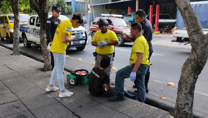 Comandos de Salvamento atiende a una persona que fue atropella en la avenida Cuba, San Jacinto, San Salvador y ha sido identificada como Alejandro Rivera de 30 años. Según versiones preliminares de testigos, el peatón se encuentra en aparente estado de ebriedad y él se lanzó al vehículo tipo sedan.