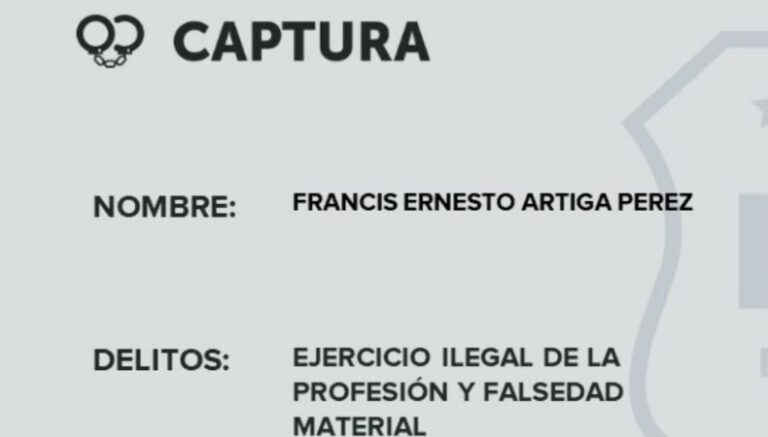 A través de la cuenta X, la FGR reportó la captura de un hombre, identificado como Francis Ernesto Artiga, por hacerse pasar como médico del país, desde el año 2005 hasta la actualidad.