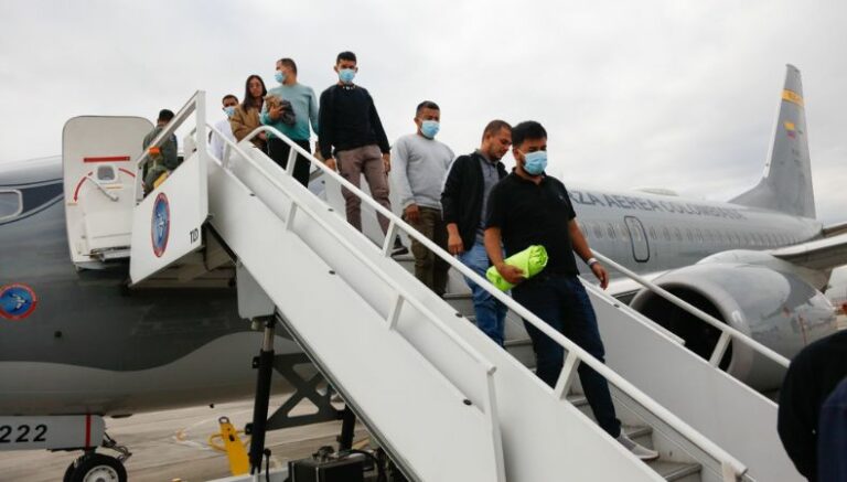 La cancillería colombiana señaló que el gobierno dispuso esos aviones para traer «91 connacionales provenientes de El Paso, Texas, Estados Unidos «.
