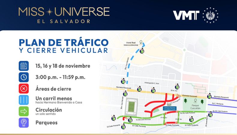 El Gobierno de El Salvador presentó el Plan de Tráfico para los próximos eventos a realizarse al Miss Universo 2023.