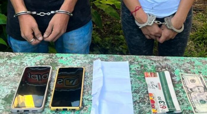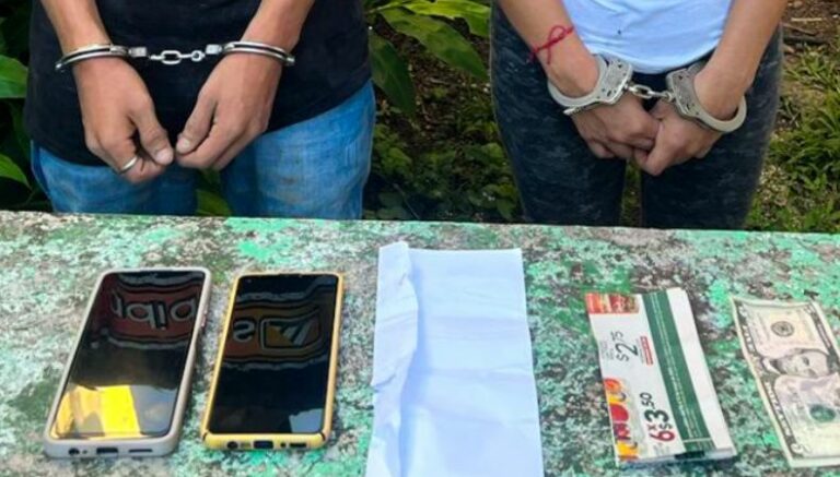 Este jueves, la Policía Nacional Civil (PNC) informó que dos presuntos miembros de una estructura criminal fueron capturados en un operativo de extorsión controlada, donde, según las autoridades, exigían $400 a uno de nuestros agentes encubiertos, en Colón, en el departamento de La Libertad.