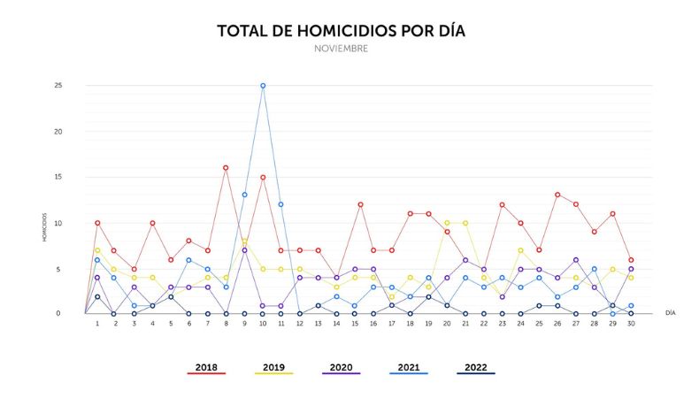 Según registran las estadísticas proporcionadas por la misma Institución, el mes de noviembre se ha convertido en el mes más seguro en lo que respecta a la historia delincuencial en el país. El mismo presidente de la República, Nayib Bukele, lo nombró como «El mes más seguro de toda la historia de El Salvador».
