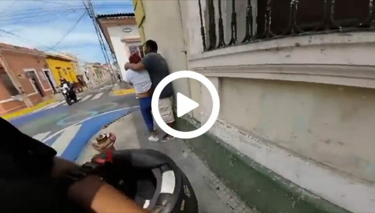 En el metraje, se puede ver a un hombre y una mujer estando muy cerca al lado de la calle, en la acera. No se puede ver con claridad si el varón la está sujetando contra su voluntad o no. Sin embargo, según el sujeto que graba, el hombre habría golpeado y propinado arañazos a la mujer.