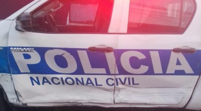 La Policía Nacional Civil (PNC) ha detenido a Juan Francisco Alfaro Aguilar, quien, según información de las autoridades, manejaba en evidente estado de ebriedad, lo que ocasionó que colisionara con una patrulla en el momento que los agentes se dirigían a atender una emergencia.