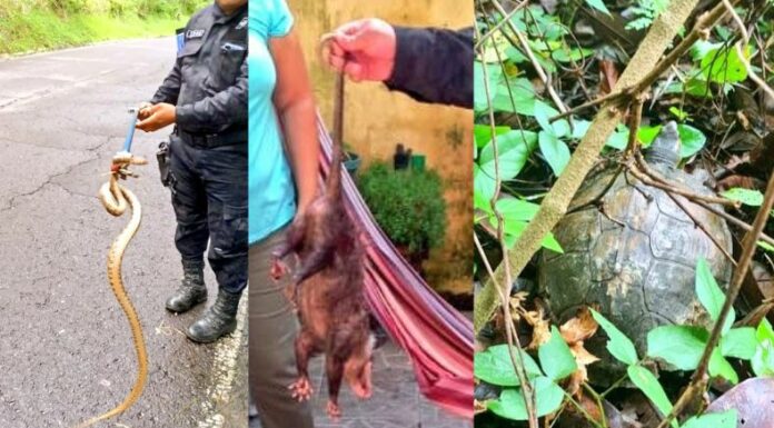 También, un tacuazín fue rescatado por policías de la División de Medio Ambiente. El animal se encontraba en una vivienda de la colonia California, San Salvador.