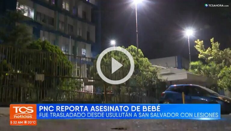 La Policía Nacional Civil (PNC) informó que procesó la escena de un homicidio, en el cual la víctima es un bebé de ocho meses, quien fue trasladado desde Usulután hacia el hospital Bloom a causa de las lesiones que presentaba. Sin embargo, debido a la gravedad de las mismas no sobrevivió.