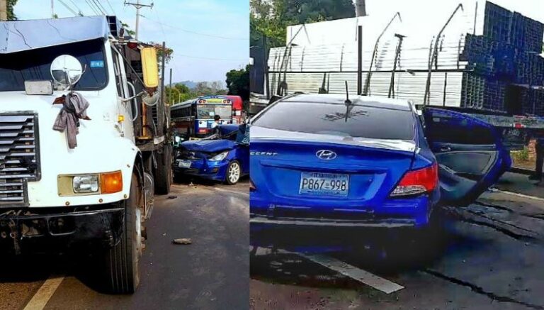 La PNC reportó un accidente de tránsito en el km 55 de la carretera Panamericana, hacia el occidente del país, donde un carro tipo sedán chocó contra un camión.