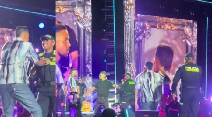 En varios videos difundidos por medio de las plataformas digitales se aprecia que Santos, desde la tarima, invita al agente a cantar junto a él. Enseguida, el uniformado muy emocionado abraza al famoso y de un momento a otro, le entregan un micrófono para que cante.