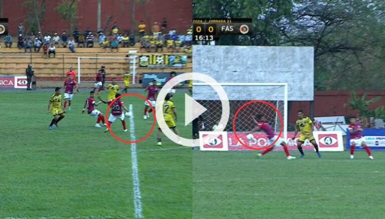 Se instaló la polémica en el 11 Deportivo vs. FAS, partido disputado en el ‘Simeón Magaña’ por la jornada 21 del Clausura 2024. Un supuesto penal tuvo lugar a los 17 minutos, cuando el balón pegó en la mano de Ibsen Castro, pero el árbitro José García no pitó la infracción, haciendo el gesto que el balón hizo un pique en el césped antes de impactar en la extremidad del defensa.