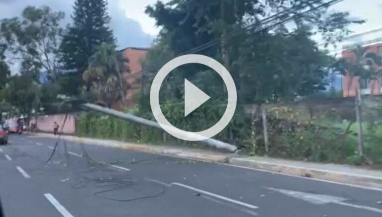Un poste del tendido eléctrico cayó sobre la calle del Mediterráneo, en Antiguo Cuscatlán, en dirección hacia el bulevar La Sultana, o si busca incorporarse a la carretera Panamericana. Tómelo en cuenta si circulará por la zona.