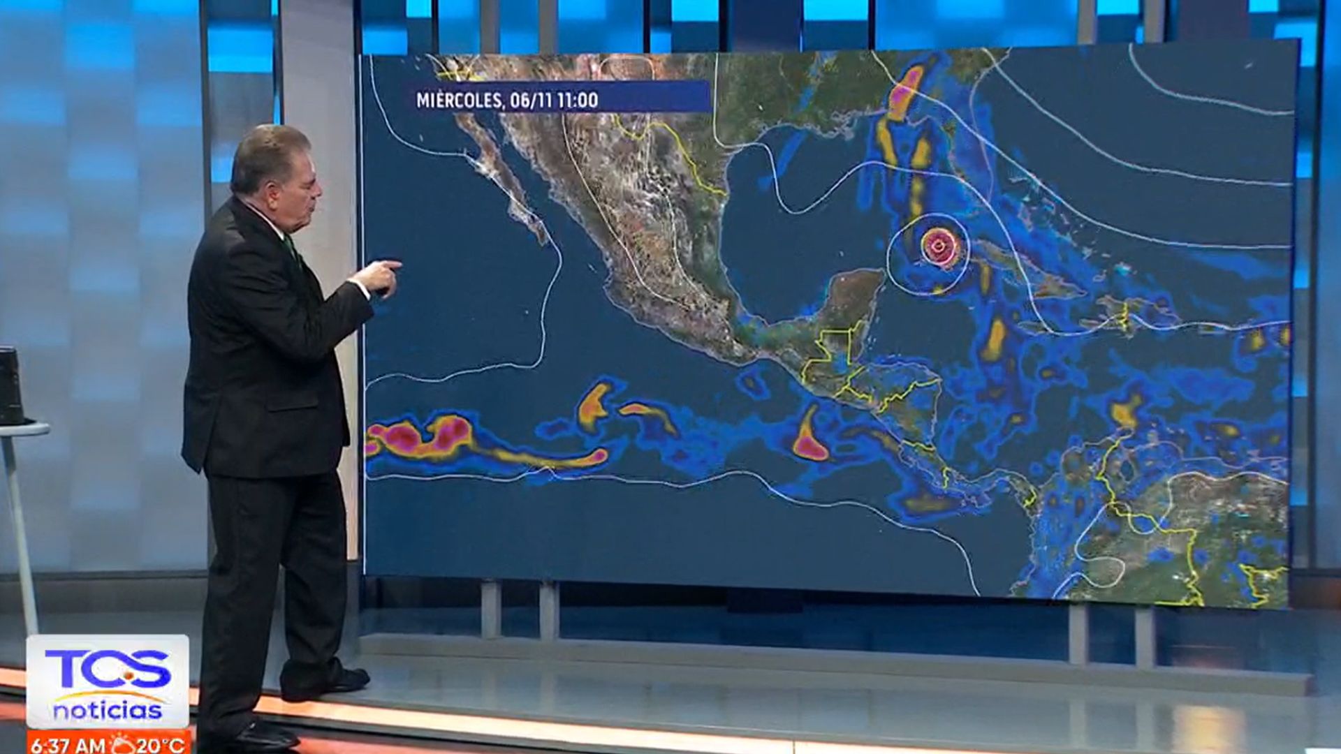 El experto en meteorología, explicó que este fenómeno se desplaza hacia el norte a 11 km/h, con vientos máximos sostenidos de 55 km/h y una presión central mínima de 1004 mb. Urbina, también puntualizó que las fuertes lluvias podrían extenderse hacia el norte de Florida a mediados de semana, así como al sureste de los Estados Unidos.