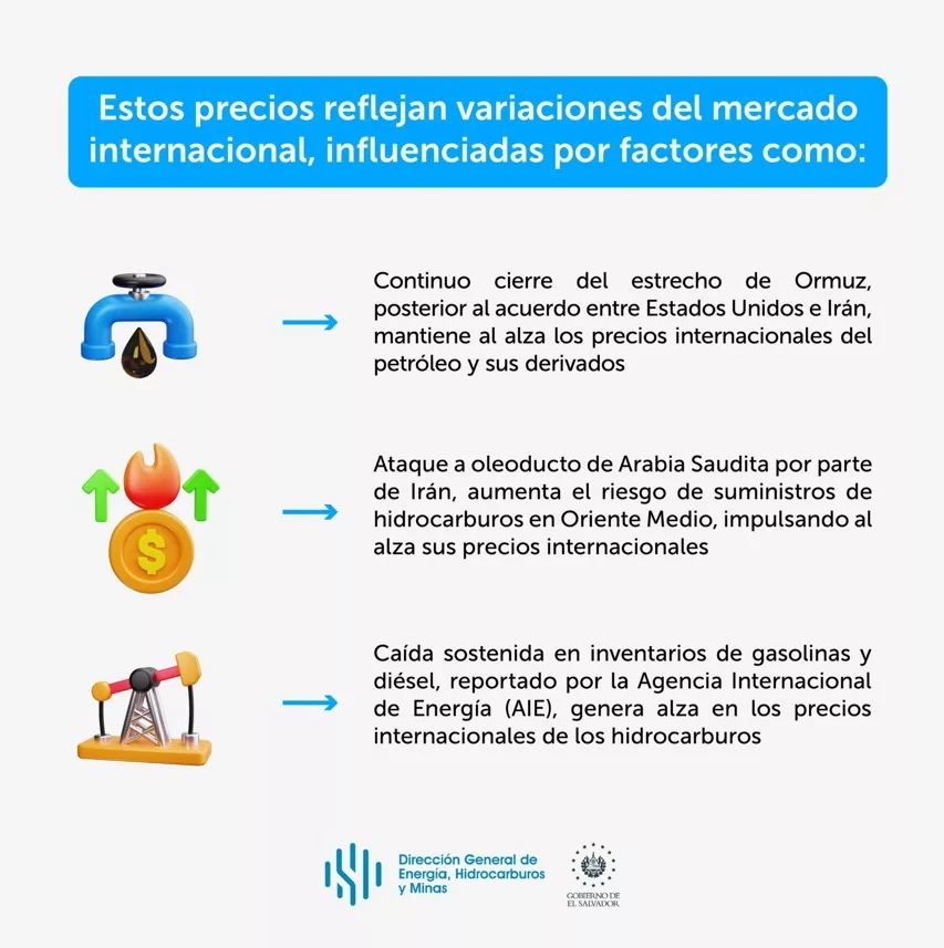 La Dirección General de Energía, Hidrocarburos y Minas (DGEHM) publicó los nuevos precios de referencia de combustible en El Salvador, los cuales reflejan un aumento en todos los derivados y estarán vigentes del 14 al 27 de abril de 2026.