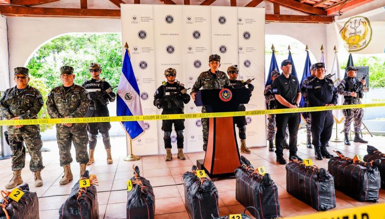 A través de la cuenta X del Ministerio de la Defensa, el encargado de la cartera, Merino Monroy, reiteró que la droga presentada fue la que se incautó a 805 millas náuticas al suroeste de la Bocana El Cordoncillo, en el Estero de Jaltepeque.