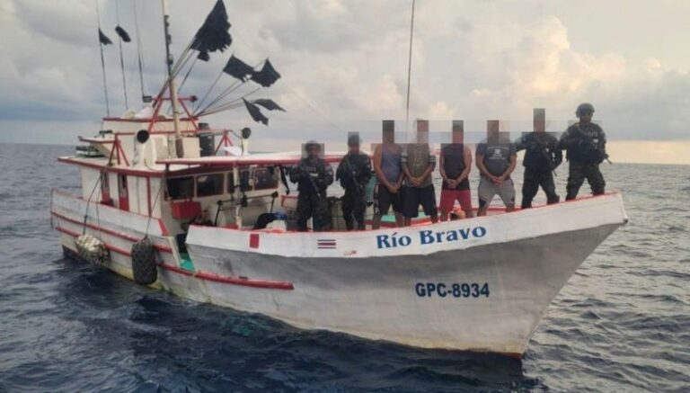 El presidente Nayib Bukele informó esta noche, a través de su cuenta oficial de X, que la Marina Nacional interceptó un barco pesquero a 570 millas náuticas (1,055 kilómetros) al suroeste de la Bocana El Cordoncillo en el Estero de Jaltepeque.