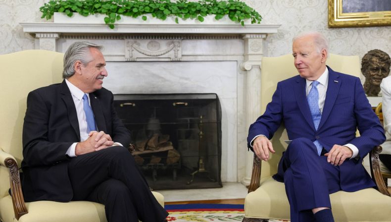 El presidente Alberto Fernández brindó esta tarde una declaración a la prensa, junto al mandatario de Estados Unidos, Joe Biden, antes de iniciar la reunión bilateral en la Casa Blanca, en Washington D.C.
