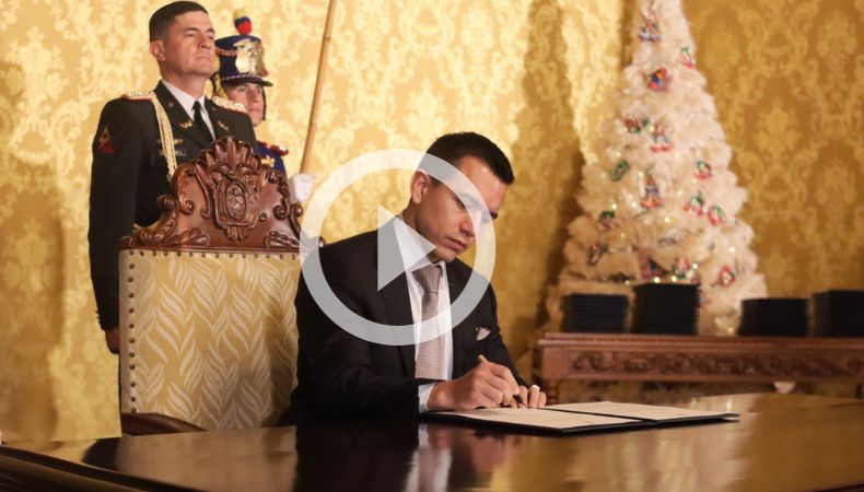 Además, agregó: «En respuesta a estos grupos narcoterroristas que pretenden amedrentarnos y creen que cederemos ante sus demandas. He dado disposiciones claras y precisas a los mandos militares y policiales para que intervengan en el control de las cárceles. Acabo de firmar el Decreto de Estado de Excepción para que las Fuerzas Armadas tengan todo el respaldo político y legal en su accionar».