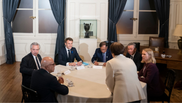La V edición del Foro de París sobre la Paz, fue el escenario del diálogo entre ambas partes. Por lo tanto, en el Foro se reunieron previamente para alentar el regreso a la negociación, con el presidente Macron y sus pares de Colombia, Gustavo Petro y Argentina, Alberto Fernández, junto a la canciller noruega Anniken Huitfeldt.