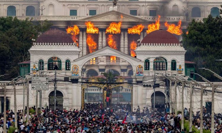 Parlamento de Nepal incendiado por los manifestantes