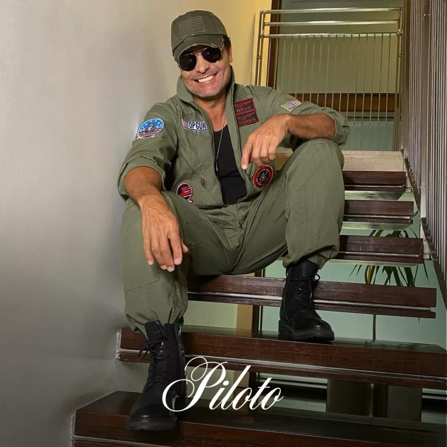 También compartió una imagen donde se le ve como pirata, con mirada desafiante y atuendo completo, demostrando que podría conquistar cualquier océano; y una más donde posa como piloto, sentado en una escalera, con lentes oscuros y un parche en el traje que lleva la palabra “Top Gun”.