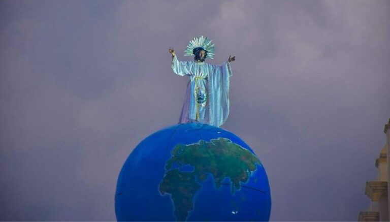 La tradicional “bajada”, que representa el acto de transfiguración del Divino Salvador del Mundo. Este es un episodio clave en la Biblia. Puesto que, Jesús cambió sus vestimentas frente a sus discípulos, recordando su divinidad.