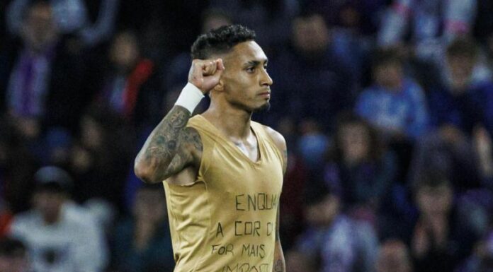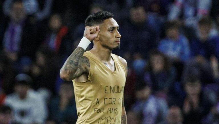 Dicha nota llevaba escrito «Mientras el color de la piel sea más importante que el color de los ojos, habrá guerra»; una frase que Raphinha mostró para dar a entender el apoyo que brinda a Vinicius Jr, tras los insultos racistas que recibió en el partido ante el Valencia.