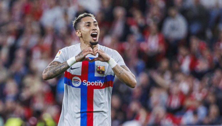 Todo parecía indicar que la primera parte culminaría tablas. No obstante, un solitario Raphinha recibió en el área y definió con tiro cruzado que besó las redes al 45+2′ (1-0).