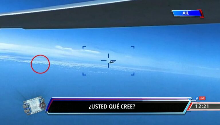 Como se ve en el metraje, un artefacto de color blanco sobrevuela a una distancia considerable del punto de encuentro.