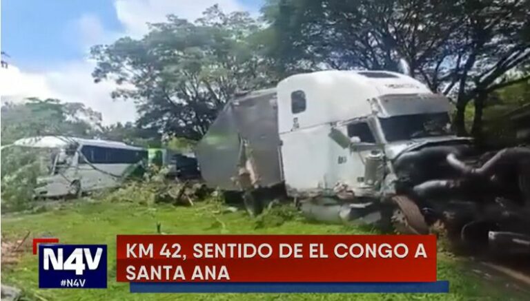 Sobre el Km. 42 de la carretera Panamericana, en el sentido que conduce de El Congo hacia Santa Ana. Las autoridades del VMT y Policía Nacional Civil (PNC) se mantienen en la zona para regular el tráfico en el lugar. Además, hacen el llamado a los conductores de precaución, para que tomen en cuenta si se dirige hacia ese destino.