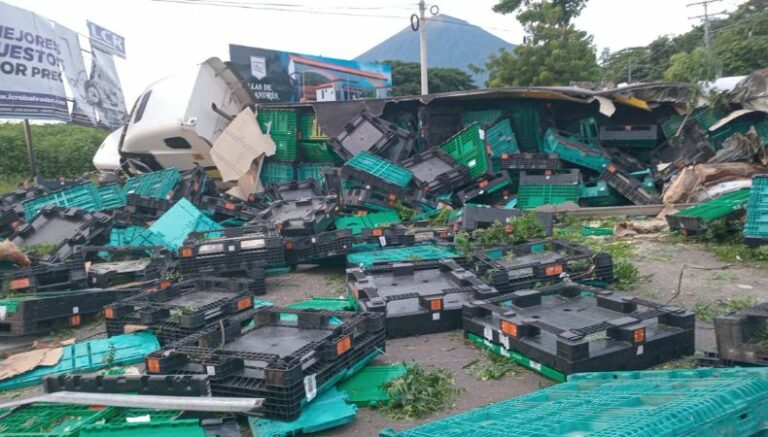 La PNC reportó un fuerte accidente de tránsito, donde la involucrada es una rastra. Según la información preliminar, el conductor de esta perdió el control, saliéndose de la calle y terminó impactando en medio de una zona verde.